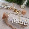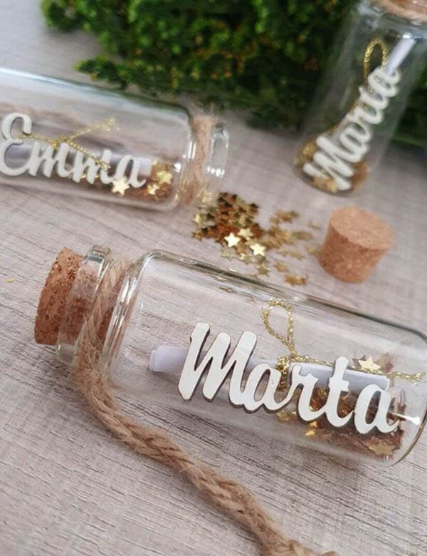 ✨ Haz que cada momento especial se convierta en un recuerdo único con nuestro Botecito de los Deseos Personalizado, un detalle mágico que combina nombre en madera y un pergamino para escribir mensajes, votos, deseos o dedicatorias. Perfecto para Navidad, bodas, bautizos, comuniones, cumpleaños o cualquier evento especial, este pequeño frasco se convierte en un recuerdo inolvidable lleno de significado.