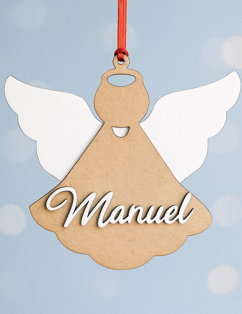 👼 Decora tu hogar con este precioso Ángel de Navidad con nombre personalizado, elaborado en madera natural con alas y nombre en color blanco. Un adorno único y lleno de encanto para estas fiestas.