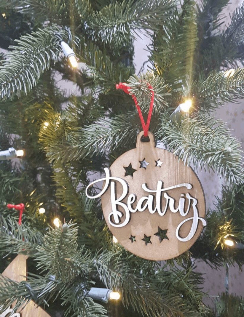 ✨ Decora tu árbol con un toque único y especial gracias a nuestra Bola de Navidad Personalizada con Nombre y Estrellas. Este adorno está fabricado en madera y diseñado con un acabado elegante que combina una base con estrellas recortadas y un nombre superpuesto en relieve. Perfecto para regalar, decorar tu hogar o añadir un detalle memorable a cualquier celebración navideña.