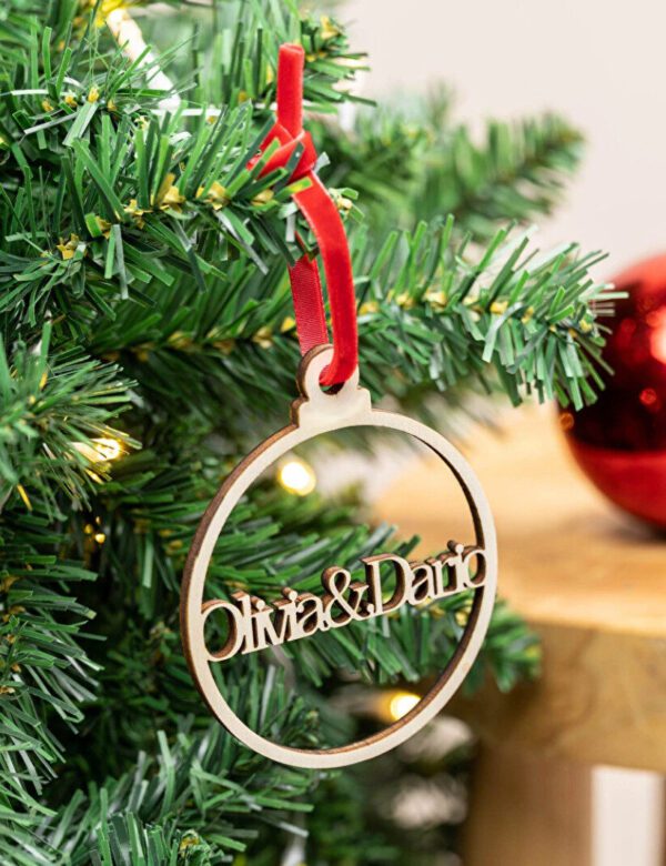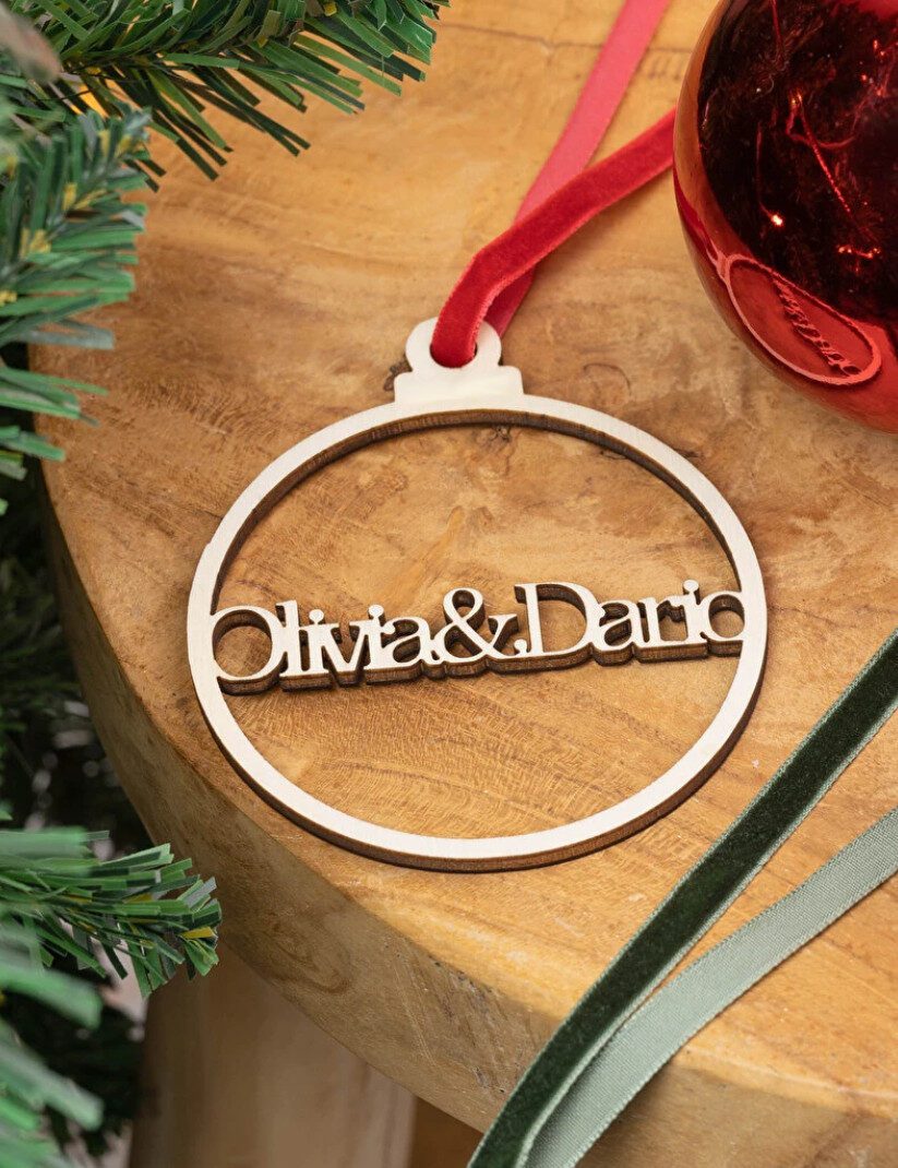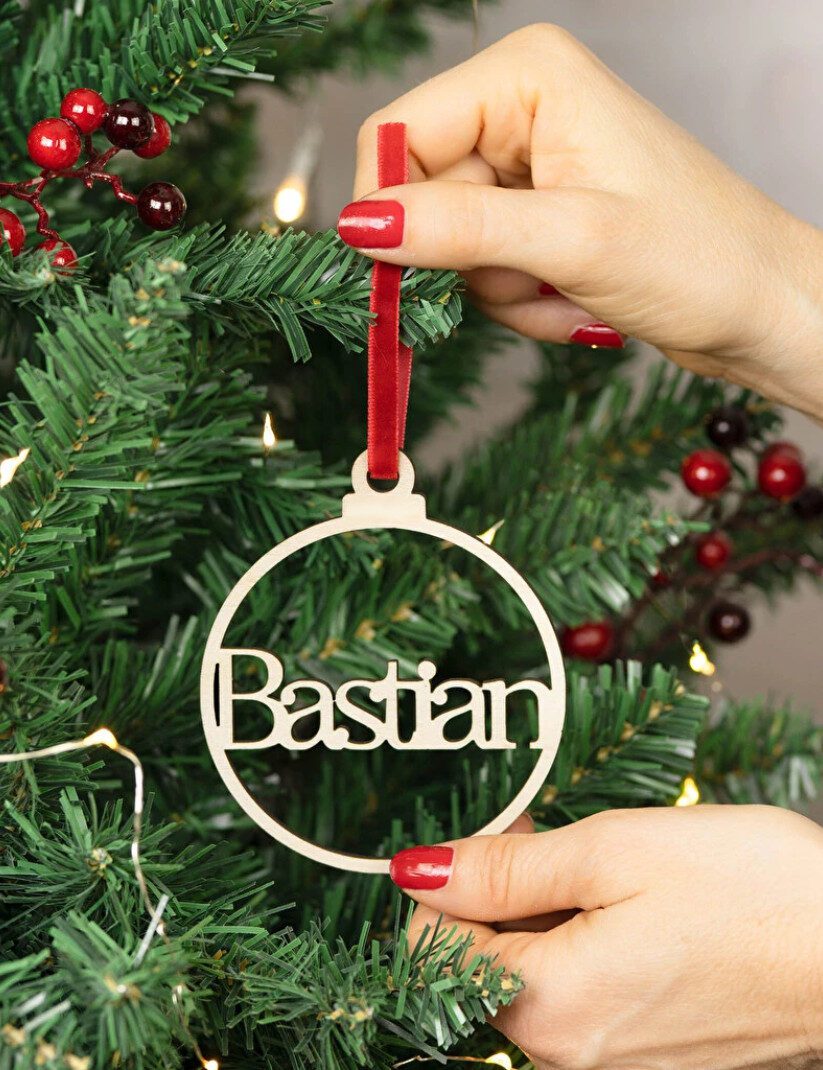 Cada pieza se personaliza con el nombre que elijas, convirtiéndola en un detalle único para tu árbol de Navidad, tu hogar o para regalar a familiares y amigos. Su acabado limpio y su textura cálida hacen que este adorno sea ideal para quienes buscan una decoración navideña más artesanal, acogedora y con significado propio.