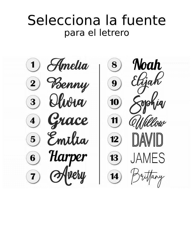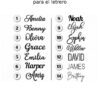 Puedes elegir el tipo de letra que prefieras y personalizar tu adorno a tu gusto. Para ver todos los estilos disponibles, consulta la imagen de muestras incluida en la ficha del producto.