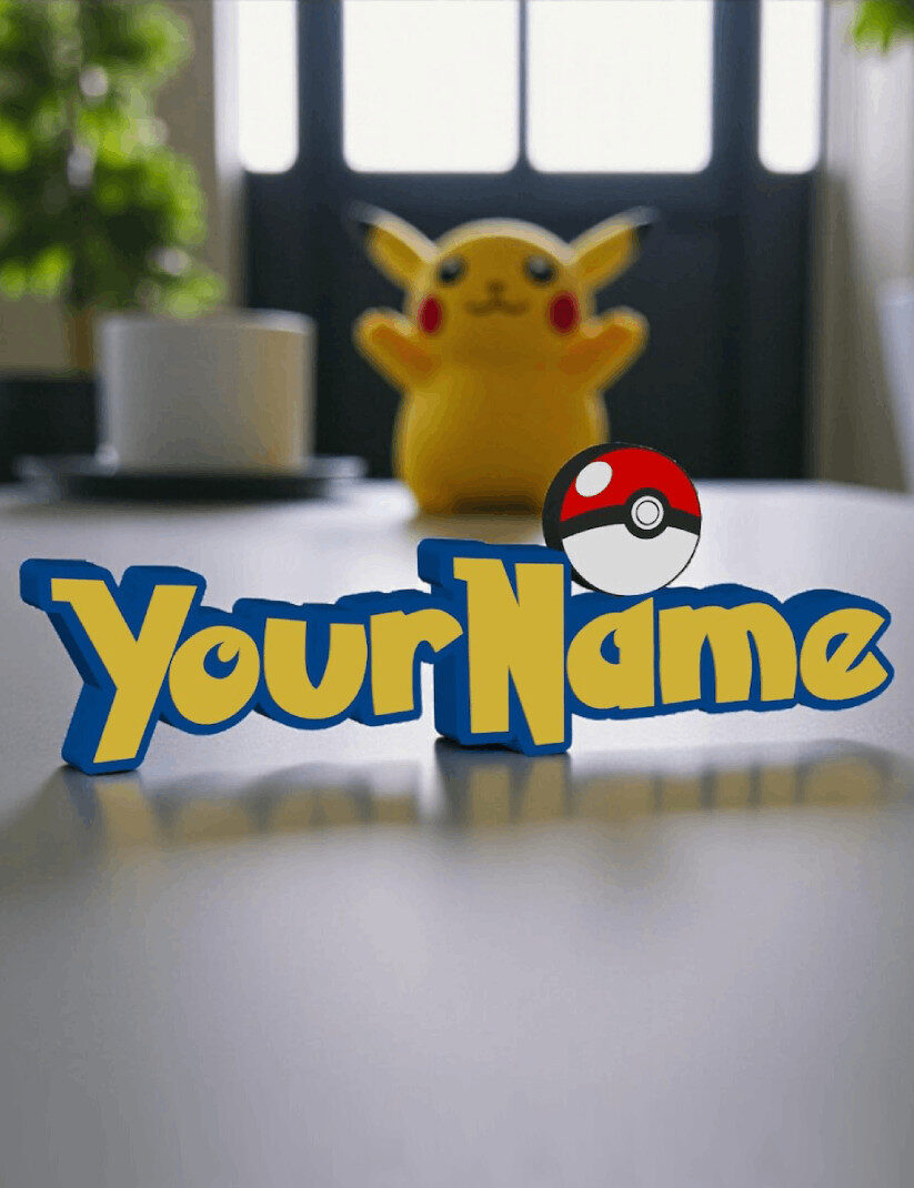 - 🎮 Nombre personalizado con la icónica tipografía Pokémon.