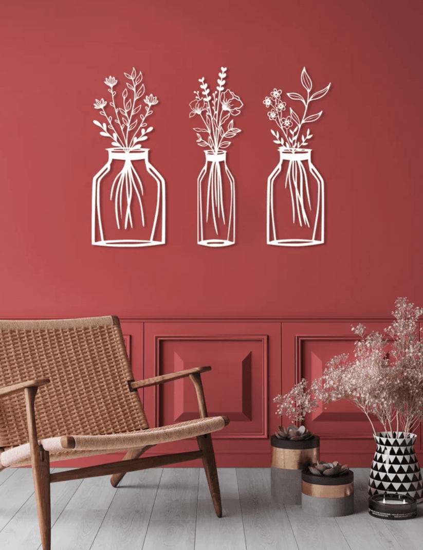 Fabricados en madera de alta calidad, estos cuadros destacan por sus lΓneas delicadas y su acabado artesanal. Cada pieza tiene una altura aproximada de 30 a 35 cm, lo que permite crear composiciones visuales muy atractivas colocΓ‘ndolos juntos o distribuyΓ©ndolos en distintas paredes de tu hogar.