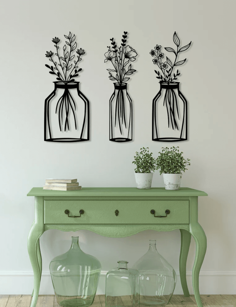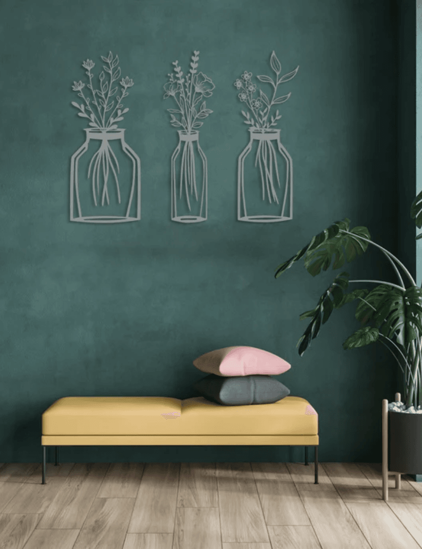 - πΏ Set de 3 cuadros de madera con diseΓ±os botΓ‘nicos en silueta.