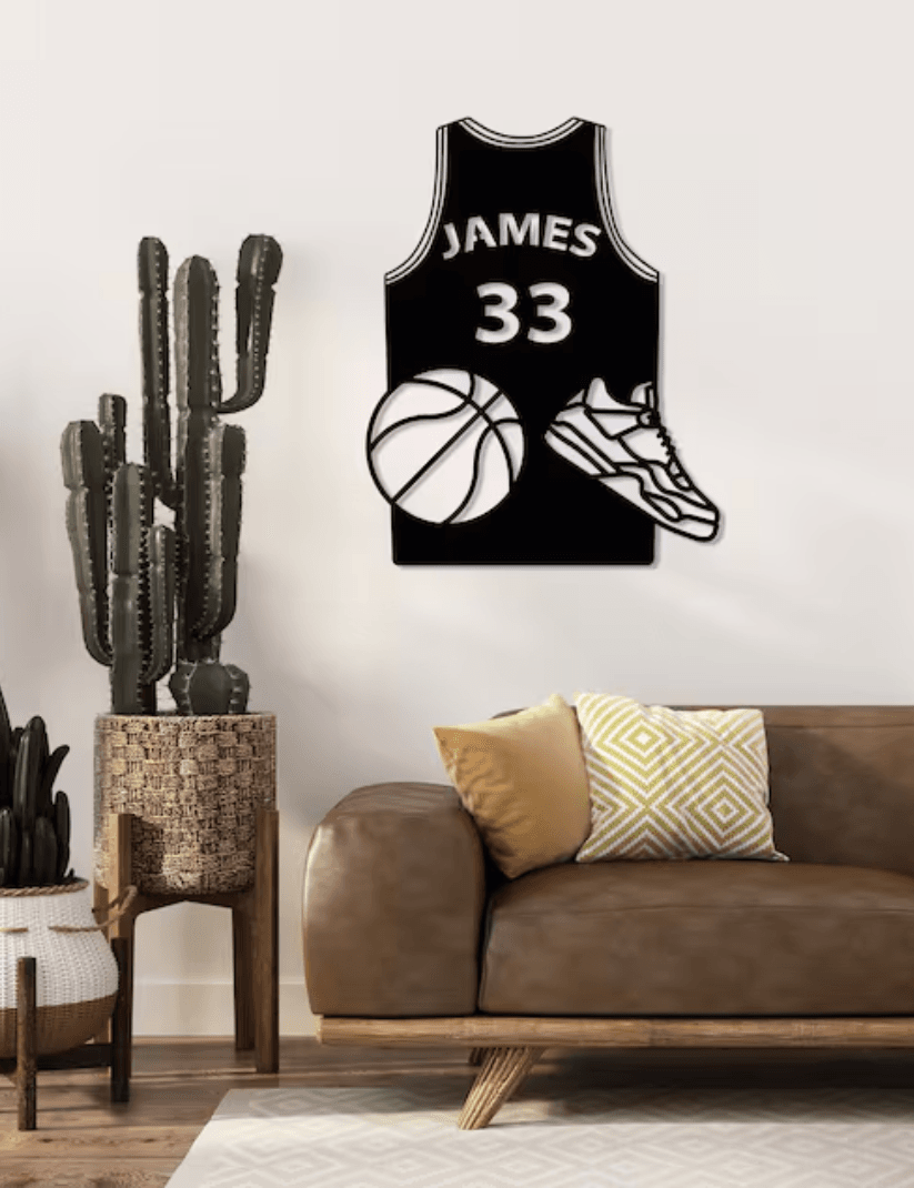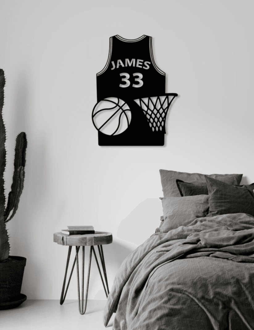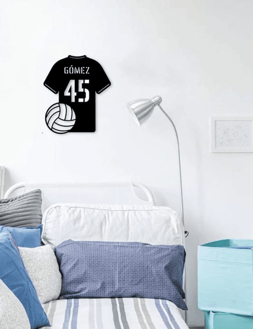 Perfecta para habitaciones infantiles, salas de juegos, estudios, gimnasios o como regalo especial para deportistas y aficionados. Puedes personalizar tu camiseta con nombre, número y elegir entre varios colores pintados a mano o mantenerla en madera natural para un acabado rústico y elegante.