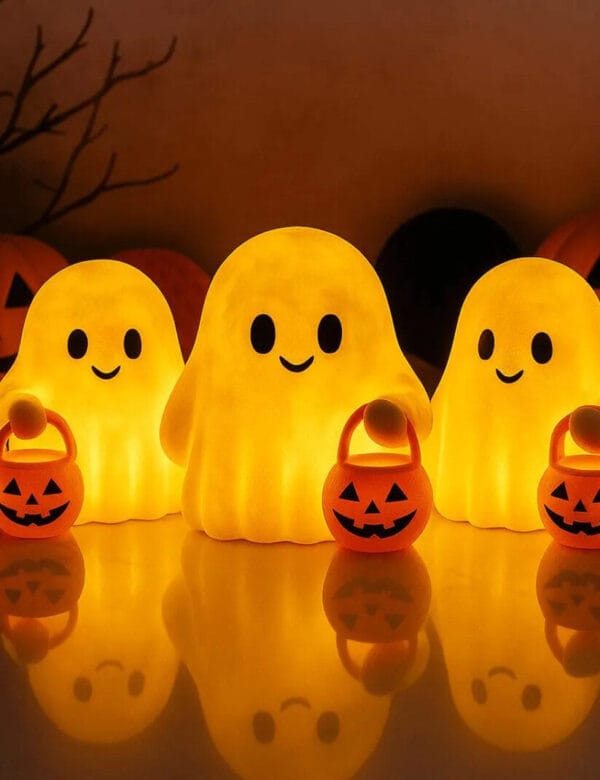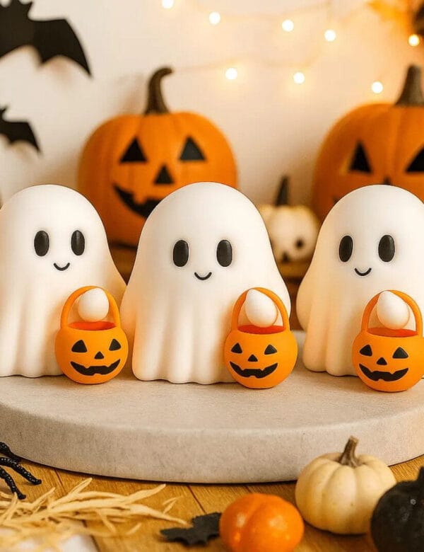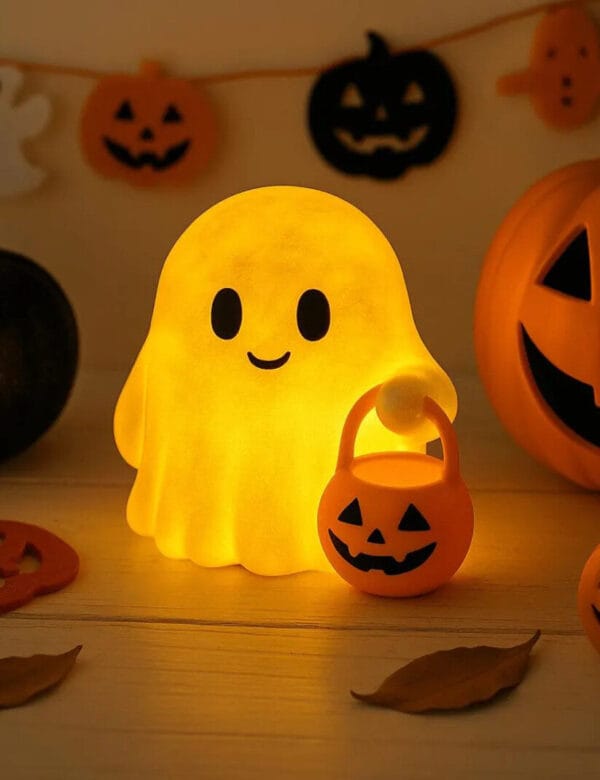 - 🎃 Diseño adorable: cada fantasma lleva una calabaza de Halloween en miniatura.