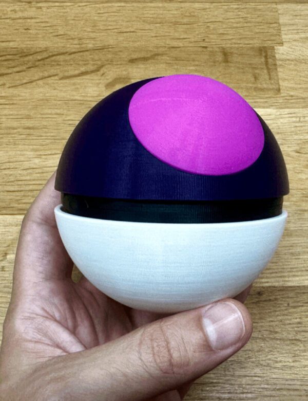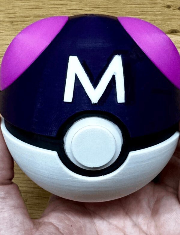 Diseñada con precisión y fabricada mediante impresión 3D de alta calidad, esta Master Ball combina belleza y funcionalidad. Cada detalle ha sido cuidadosamente reproducido para capturar la forma y los colores originales del universo Pokémon. Es una pieza resistente, duradera y con un acabado artesanal que garantiza un resultado impecable.