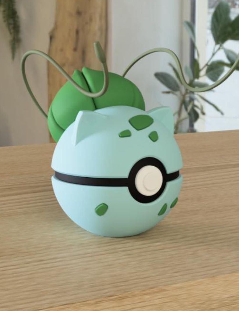 Por eso creamos esta Poké Ball edición Bulbasaur: una pieza que fusiona el diseño icónico de la Poké Ball con los rasgos más reconocibles de Bulbasaur. El bulbo con sus lianas brotando en la parte superior, las orejas puntiagudas, las manchas verdes características sobre el verde menta de su cuerpo y el botón central clásico se integran en una esfera que cualquier entrenador Pokémon reconocerá al instante.