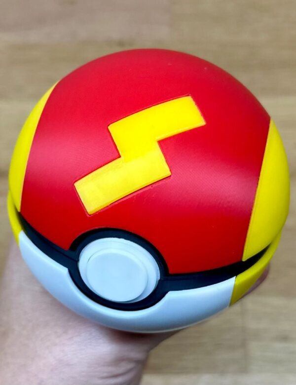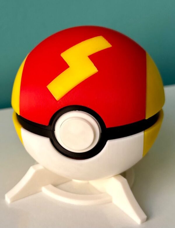 ⚡ Añade velocidad y energía a tu colección con esta Rapid Ball 3D, inspirada en una de las Poké Balls más dinámicas del universo Pokémon. Su combinación de colores rojo intenso con detalles amarillos la convierte en una pieza vibrante que no pasa desapercibida en ningún setup gamer.