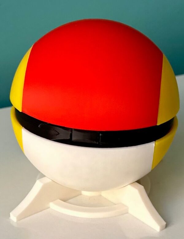 Fabricada mediante impresión 3D de alta precisión, esta Rapid Ball reproduce fielmente su diseño original con acabados cuidados, estructura sólida y colores bien definidos. Es ideal tanto como elemento decorativo para coleccionistas como para quienes buscan una solución funcional y original para organizar sus juegos.