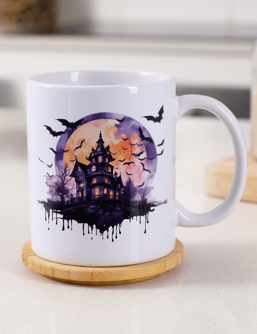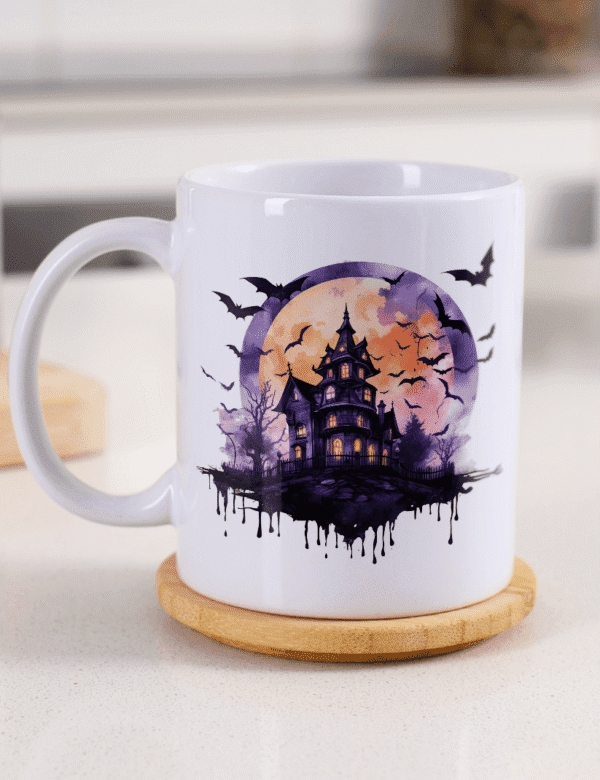 Disfruta de tus bebidas favoritas con un toque aterrador con esta taza de cerámica de alta calidad, perfecta para la temporada de Halloween. El diseño presenta un castillo embrujado bajo una luna llena naranja y púrpura, rodeado de murciélagos que vuelan en la noche. Ideal para añadir un toque espeluznante a tus mañanas o para regalar a los amantes de lo paranormal. Con un acabado brillante y resistente, esta taza no solo es visualmente impactante, sino también duradera y apta para microondas y lavavajillas. ¡Haz que cada sorbo sea una experiencia fantasmagórica!